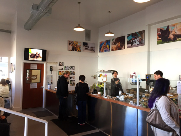 I walked in without a reservation, which you can make by phone or online, so I had to wait a little while for the next available appointment. You can peruse the cafe and sip a tasty beverage while you wait, which is what I did, because they only let a few people into the cat part of the cafe at a time.