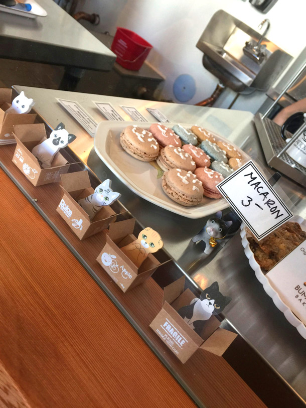 I keep trying to get the husband to look at your pics but I think the cat lady in me is annoying him, LOL! I want to go! Macarons and kitty cats!
