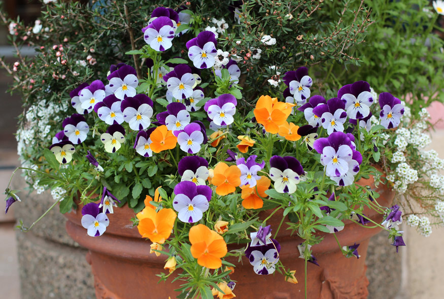 Great violas. Pansies & violas are my favorite flower ever. Sorbet Orange Duo violas would look great with the ones you have, or even better, Jolly Joker pansies.