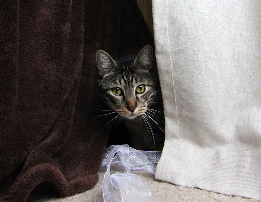 Peek-A-Boo! January 22nd, 2012 by Karen 6 Comments I see you! This is one of Tabs’ favorite games… 🙂 He likes to hide behind things and then pop out and purr-chirp at the same time.