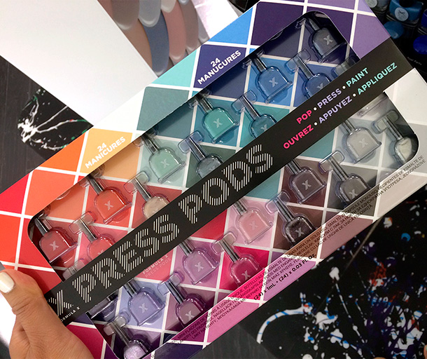 “Why settle on one color when you can have 24? Meet the Press Pods — travel friendly, single-use manicure capsules — and play your way through a vast color spectrum with one tiny, groundbreaking innovation. The set includes a variety of polish-filled pods in a covetable collection of standout shades, including vibrant classics, elegant neutrals, and modern metallics. One capsule paints all 10 nails in two generous coats of superior lacquer. For a flawless manicure on-the-go, simply pop, press, and paint.”