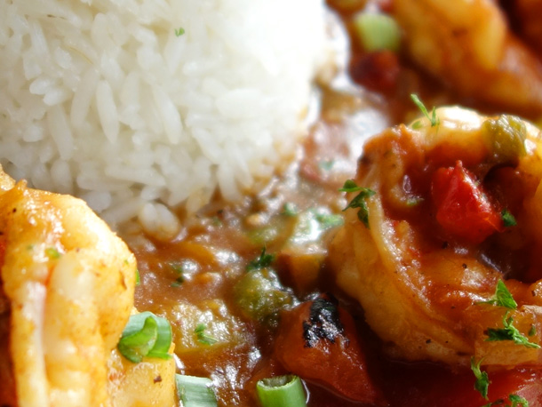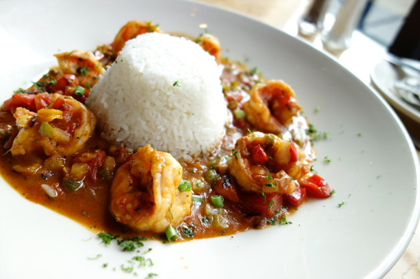 SO GOOD! From the Skinnylicious Menu: “Shrimp simmered in a spicy tasso-tomato sauce with sautéed peppers, onions and garlic. Served with a little white rice.” It was very spicy (but not hot) and very flavorful. A little like jambalaya.