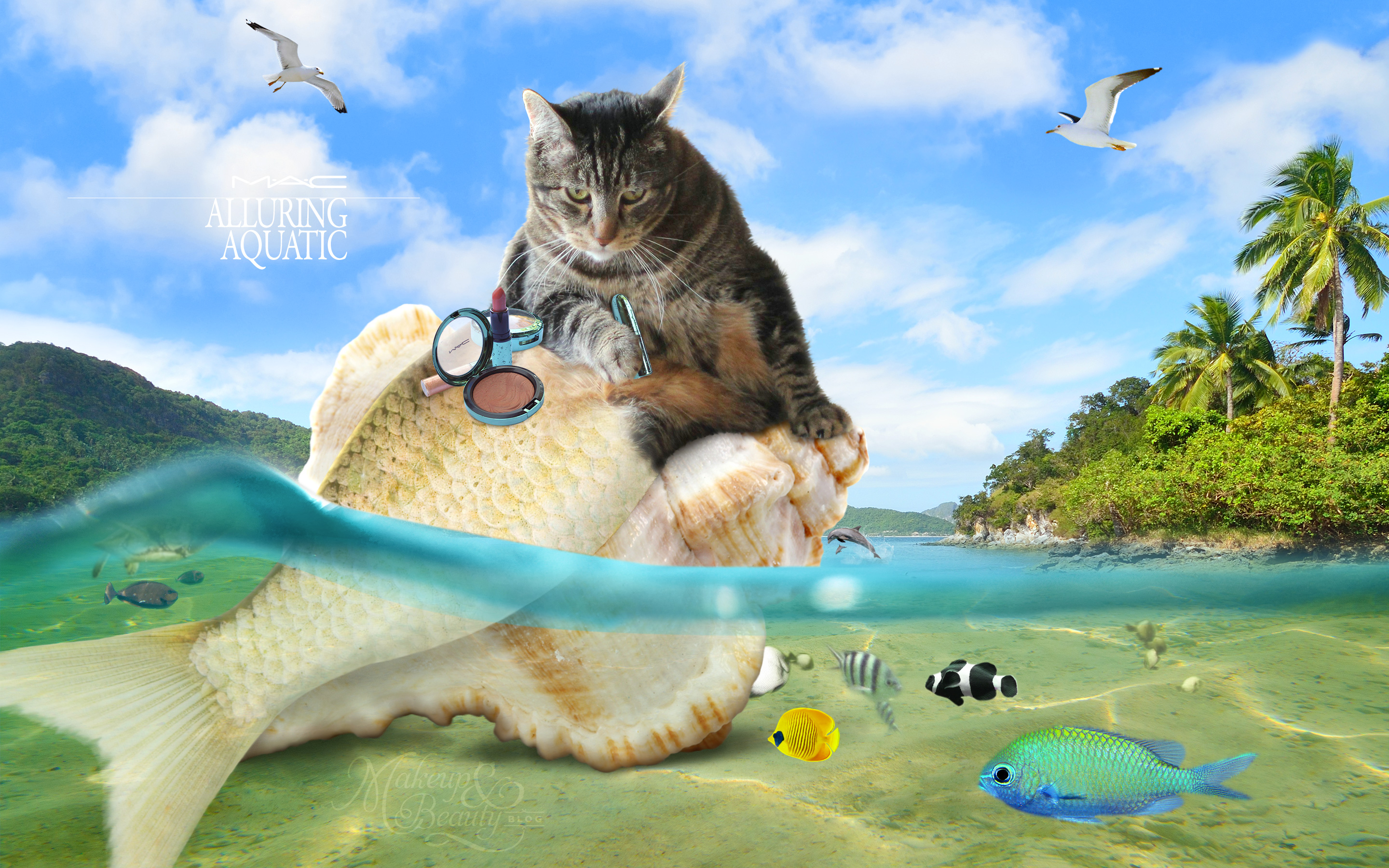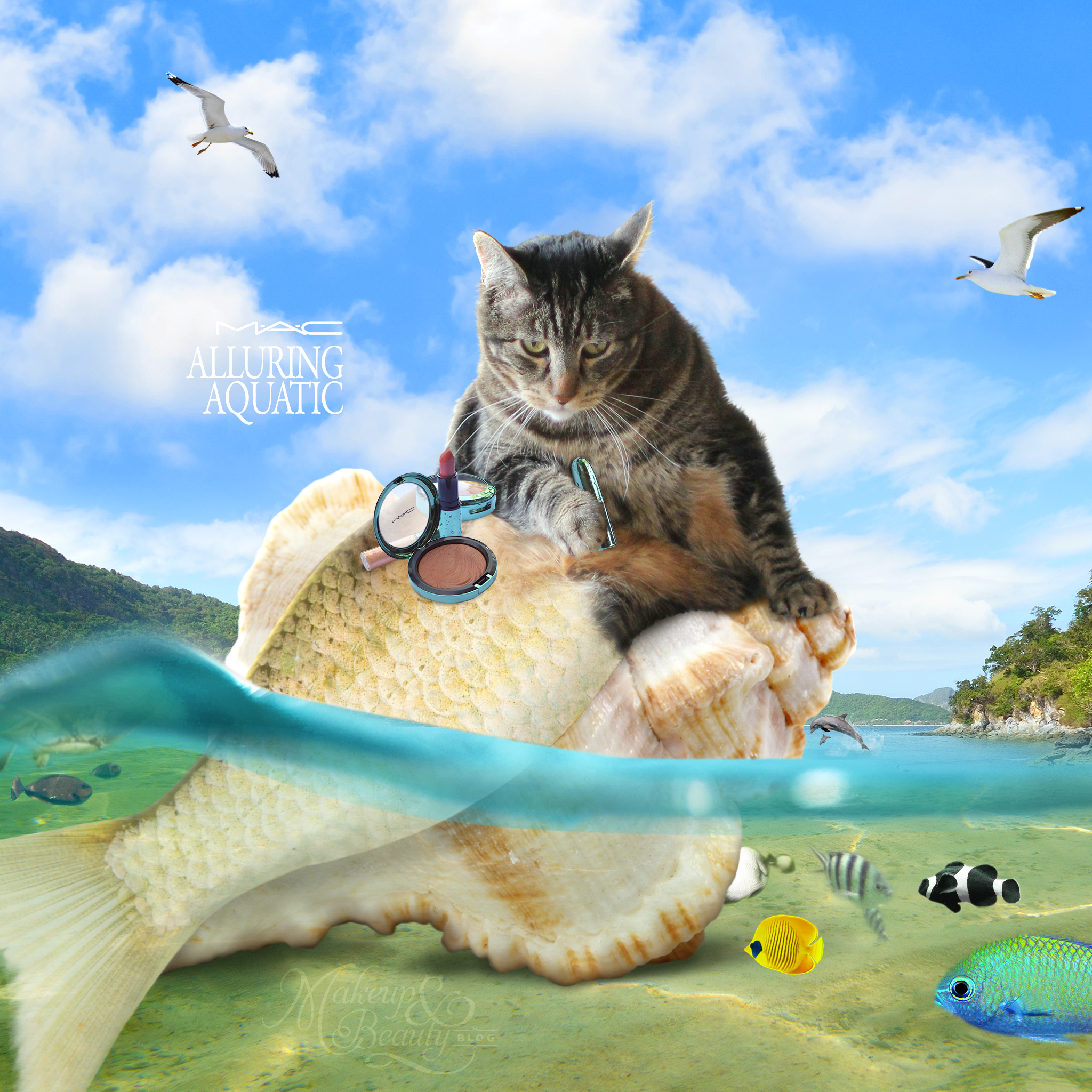 Sometimes Tabs has his own water kitty moments, like right now, with the new MAC Alluring Aquatic collection.