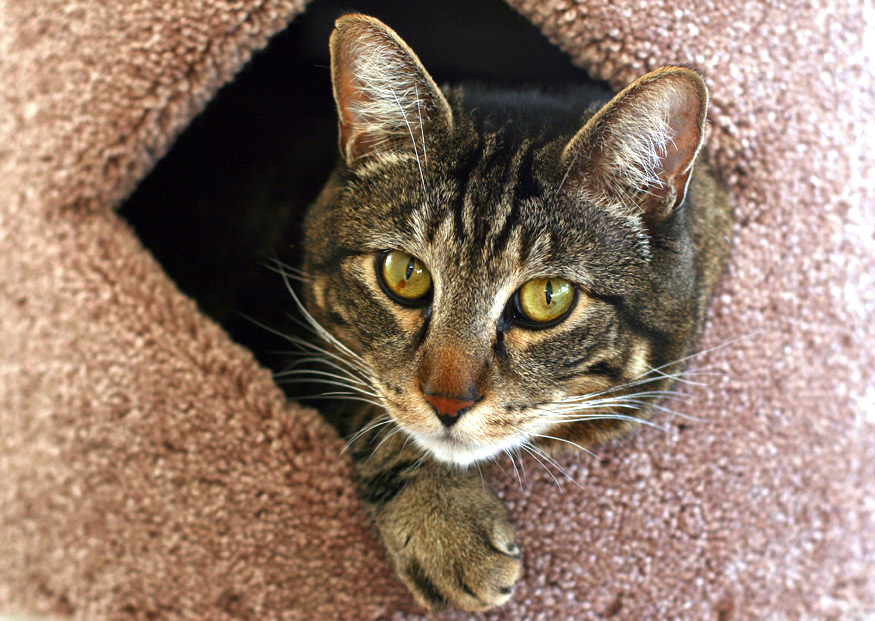 Aww, my cats always loved those! I always thought they were neat. Thinking about it from a cat perspective, what’s not to love? Little dark hidey holes to peek out of, covered in carpet, can climb and jump on them… all fun 🙂