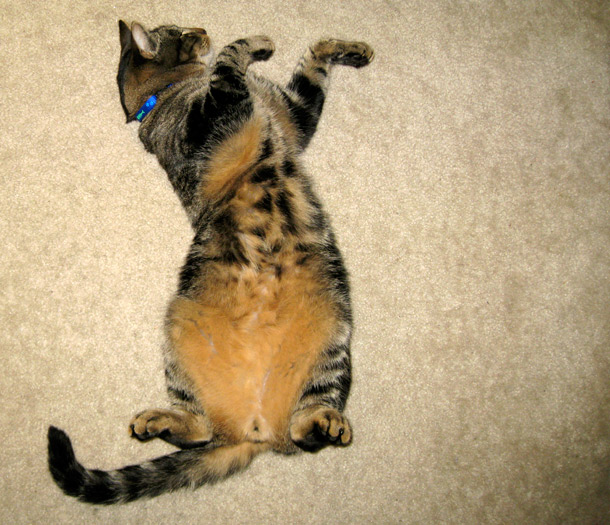 It was the tail-end of his kitten-hood. He’s a little smaller in these pics and still has his baby face. 🙂