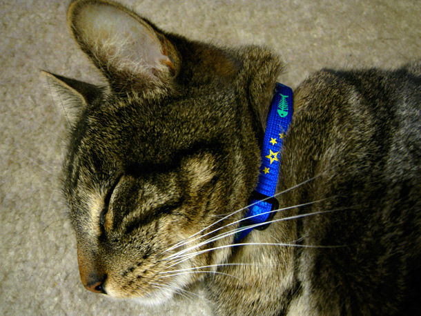 He used to lose that collar all the time! He had it in red and yellow before the blue. Sigh…they’re all over my old neighborhood.