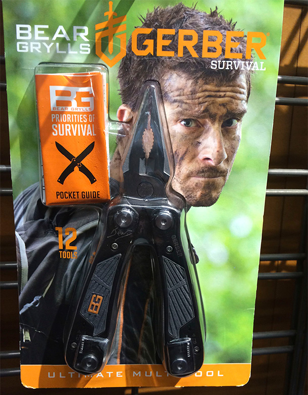 Things like how dirty Bear Grylls is on this package for a survival knife… Notice how his face is muddy, but his arm is not?