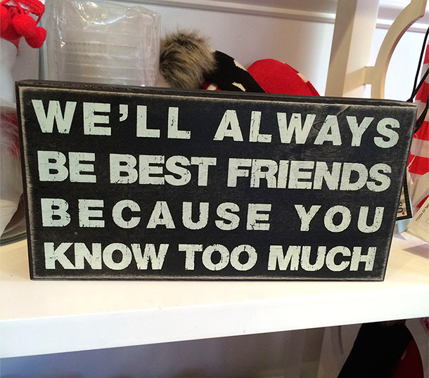 Hey, friend. Sorry if I’ve been MIA today. I had to take some time off to run some Christmas errands, so I’ve been out and about. I was thinking of you, though, ’cause I saw a few things that made me laugh, like this sign…