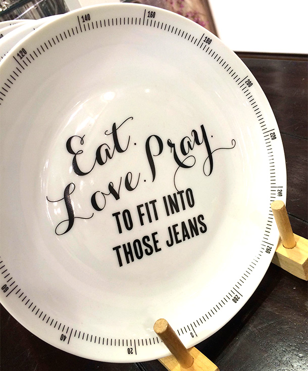I wanted to go out today so bad!! I’ve been sitting in the bed the entire day! It’s just so cold and all the pets are around making it even more cozier. Love the, eat-love-pray plate! 😀