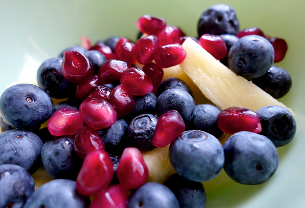Mm…those are some of my favorite fruits, right there!! LOVE pomegranate! I bet it tastes great with the sweet blueberries and the tart bite of pineapple!! 😀