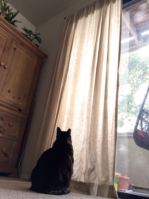 Oh, and while I was eating, Tabs was staring up at the drapes. For a long time, which he’s been doing for the past couple of days, and El Hub and I cannot figure out why.