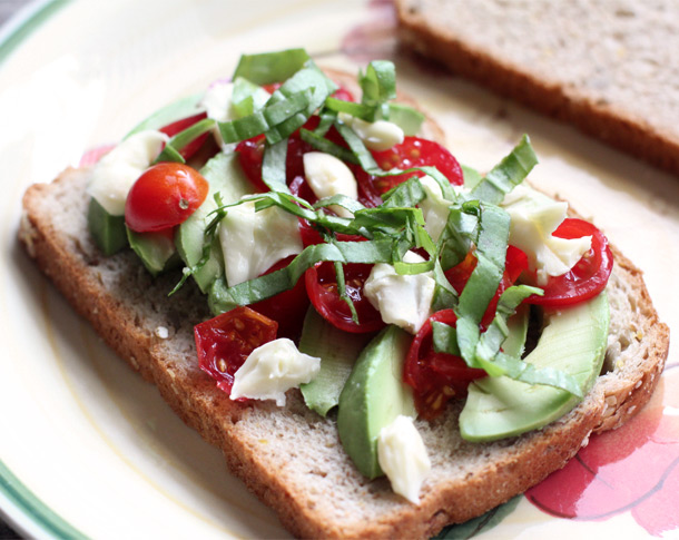 Loved love avocado, cherry tomatoes, basil, so that the cheese does not know