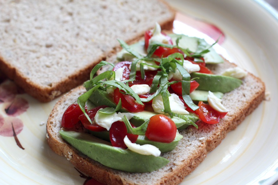 I cut it in half, then put one half in the fridge to have with dinner (I just cut away the couple brown spots). The other half, I sliced up and placed on a piece of wheat bread.