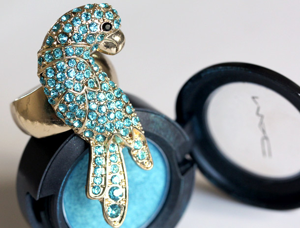 I saw this parrot ring at Target and couldn’t resist. It reminds me of one of my favorite MAC colors of all time, Parrot (from 2007’s The Originals collection).