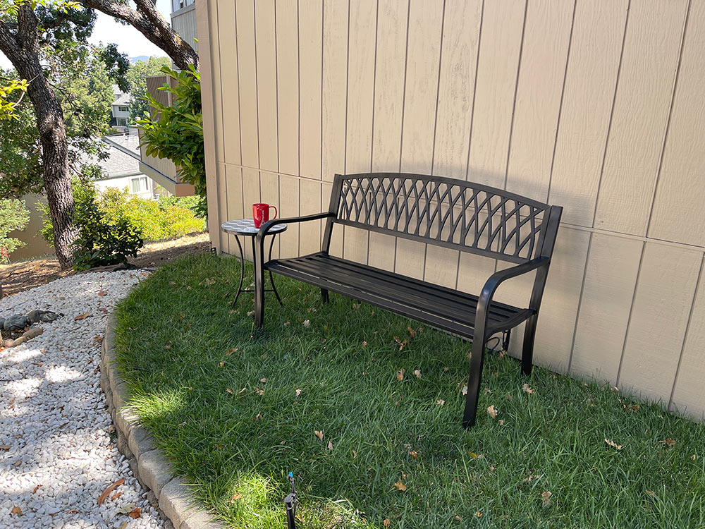 Maybe it’s powder coated steel. Either way it’s a pretty bench and I’m happy for you that you found one that you really like. It is nice to sit outside with a beverage and a book. Plus you get to watch Connor and her friends play.