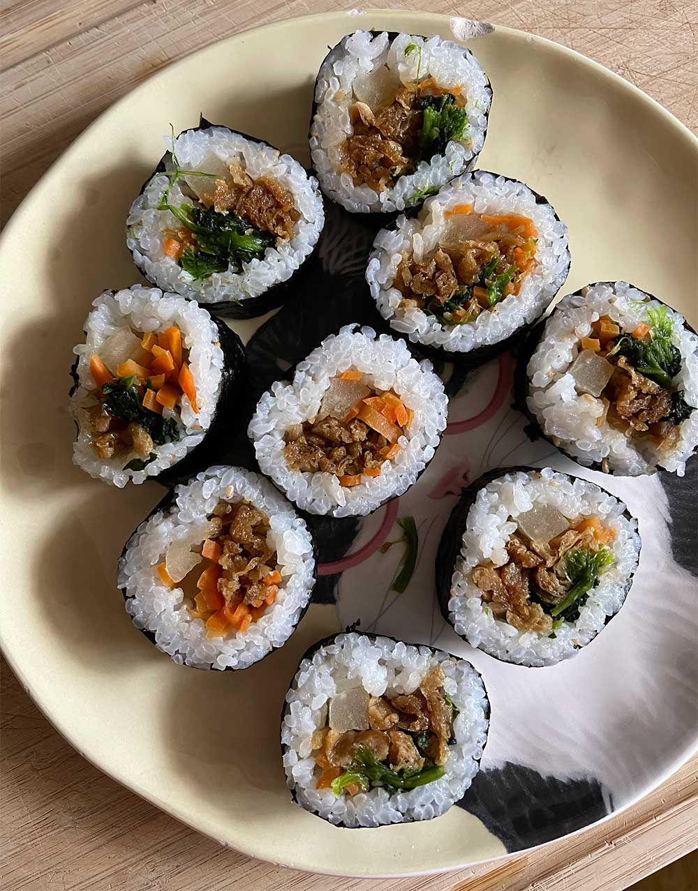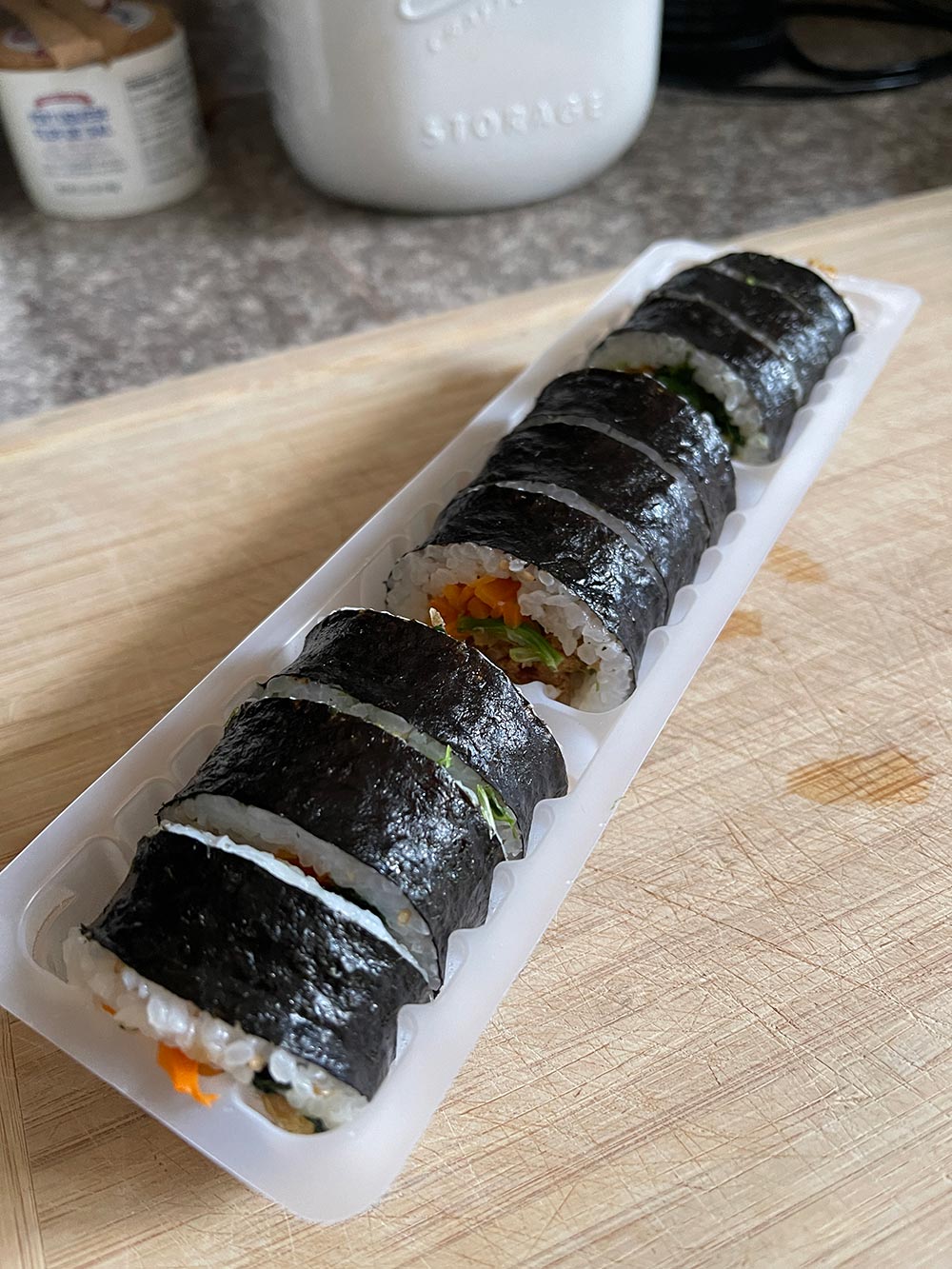 I bought a couple rolls and found that if I’m not in the mood to cook and want something filling but not too heavy, kimbap hits the spot!
