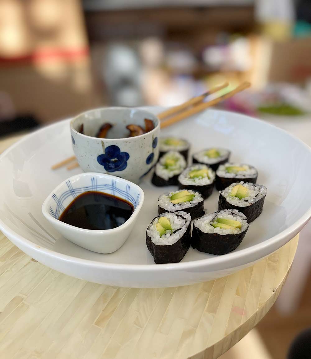 It’s been a couple days since my last happiness check in. For day five, the two things I’m grateful for are 1) the sweet sounds of birds singing outside my window in the morning (it’s a lovely alarm clock), and 2) homemade avocado sushi after a long day.