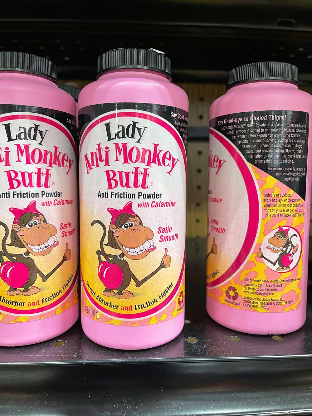 Whoever wrote the copy for the Monkey Butt label clearly had a good time. I didn’t realize this until now, but apparently it’s also for minimizing thigh chafing, too? So it’s a multi-use product. LOL.