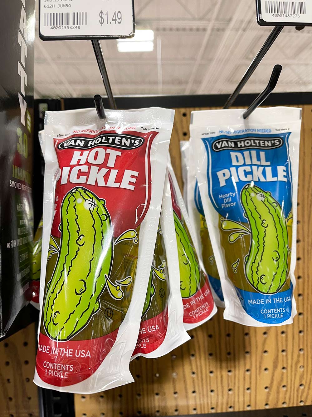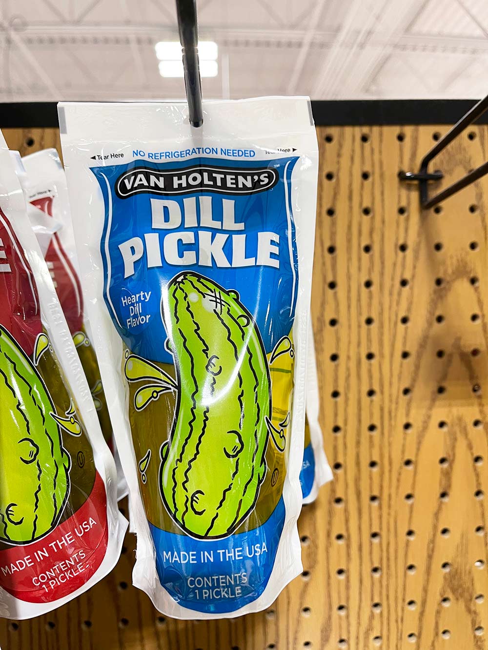 On another note, El Hub dragged me and Connor to a sporting goods store last weekend, and while he spent an inordinate time looking at fishing gear, I took pics of all the things on the shelves that I’ve never seen before, like these individual pickles in a bag.