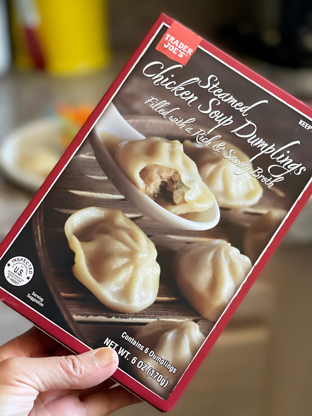 See, yesterday I was eating these soup dumplings they have at Trader Joe’s, and they’re like savory mini meatballs enclosed in a sealed wonton envelope.
