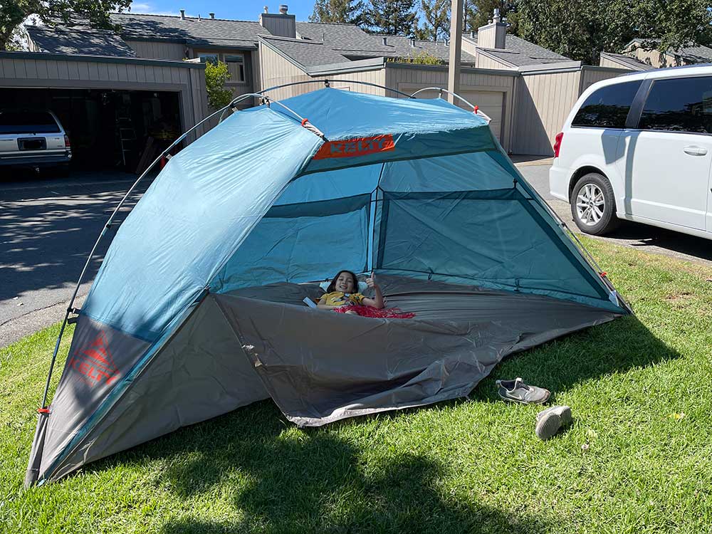 Last week I mentioned last week I was going to buy myself a gift for my b-day. I ended up with a Kelty Cabana shade tent, a 100% spur-of-the-moment purchase from our local sporting goods store, Sports Basement.