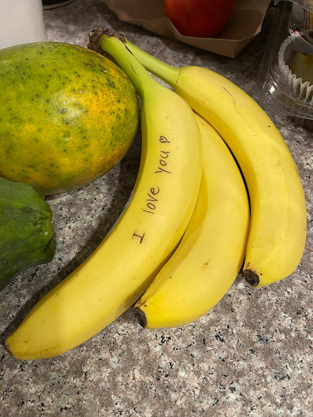 I’ve always liked writing little notes on bananas; it’s just a funny thing I’ve always liked to do.
