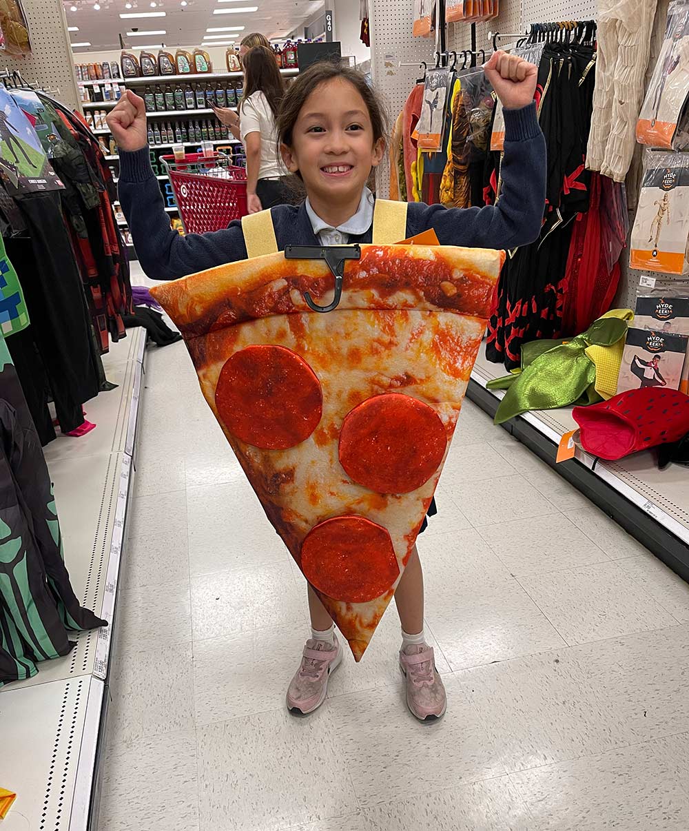 My girlfriend got a sushi costume for her vizsla dog. Her son is dressing like a hotdog. And she got a Sriracha bottle costume, with a green cap hat!!!