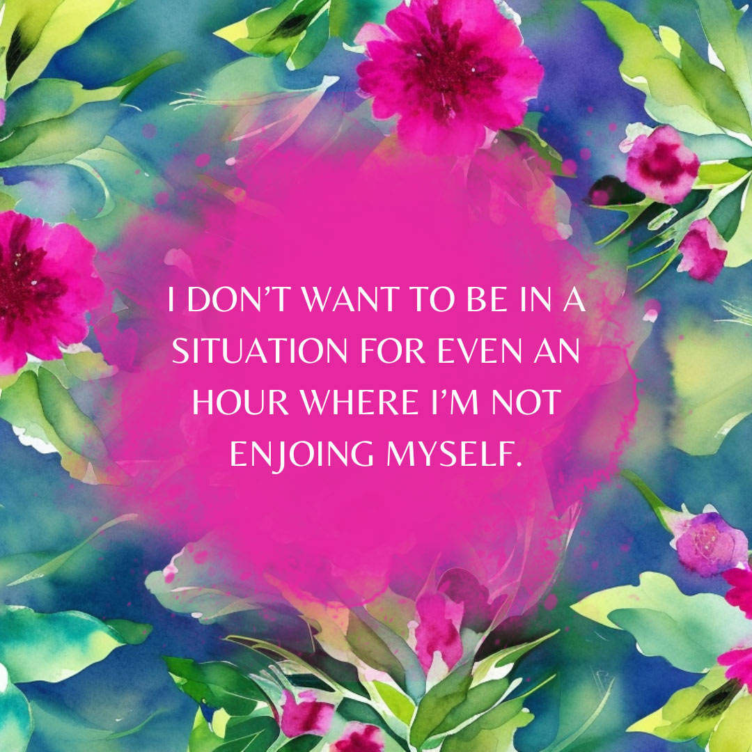 I don’t want to be in a situation for even an hour where I’m not enjoying myself.
