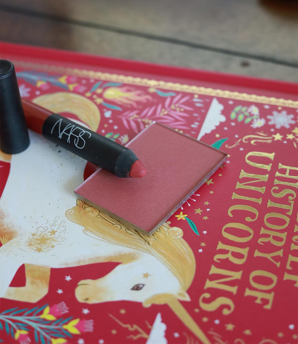 This is where I’m currently at in life, in all aspects, and especially with makeup. Like, I don’t want painting my face to be difficult in any way whatsoever, LOL. One thing I’ve been doing lately to keep things easy is a matchy-matchy lipstick and blush with NARS Dolce Vita.