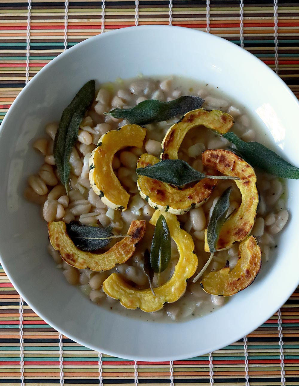 I made this dish yesterday for lunch called fagioli all’olio with beans, squash and crispy sage, and oh my goodness, it’s all I want to eat now!