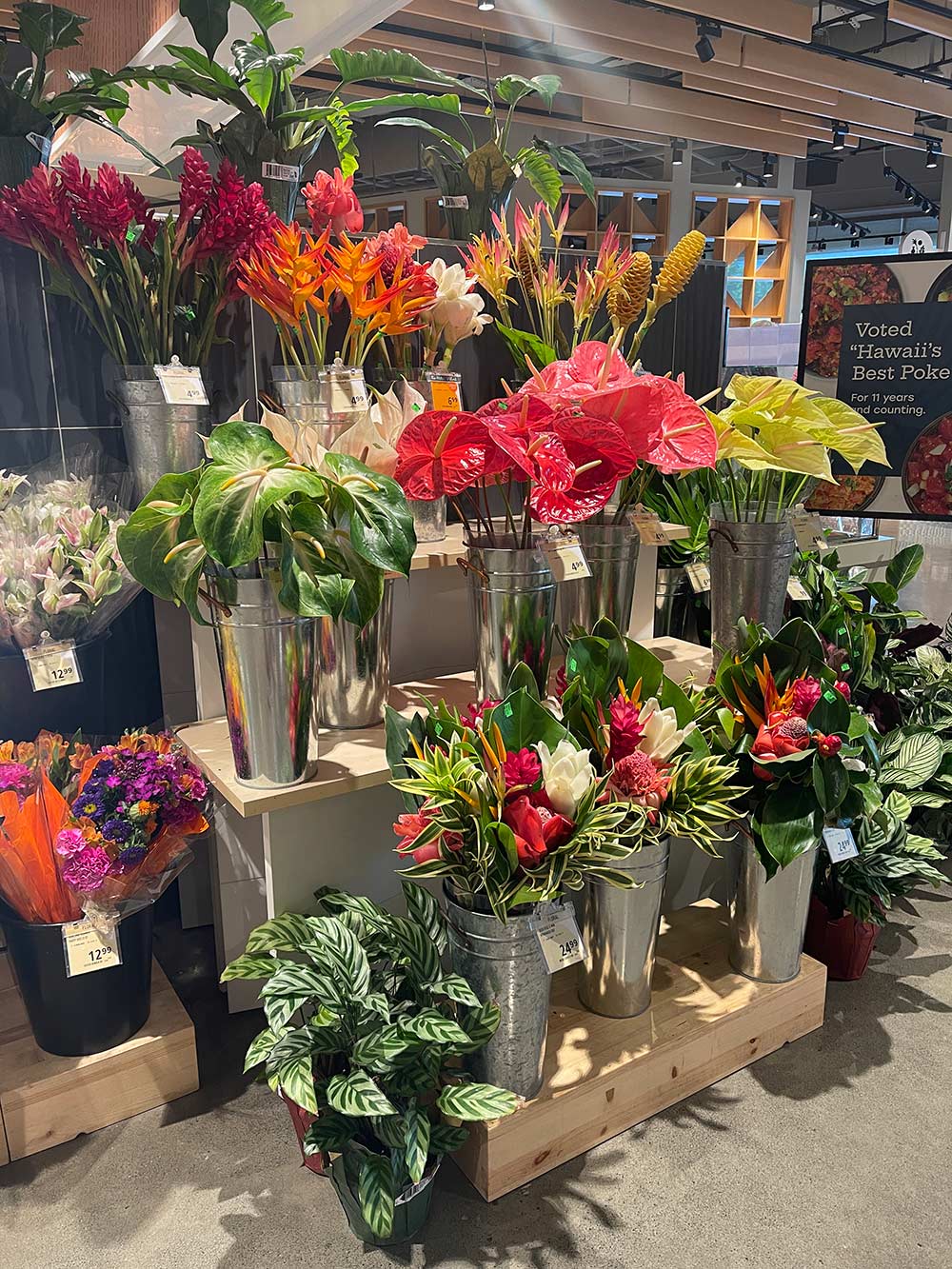 Wow those tropical cut flowers are gorgeous! Gotta love the ʻono poke selection at Foodland too! 😋