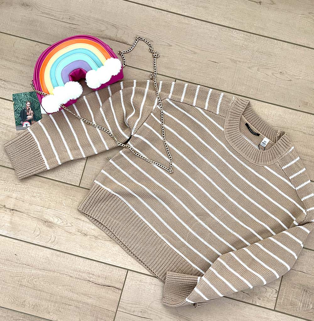 Anyway, while I was there today exchanging the purse, I couldn’t resist this cute striped camel sweater by Tahari. It’s soft (not itchy) and comes in a bunch of colors, and it was $20! It’s adorable and should go with everything.