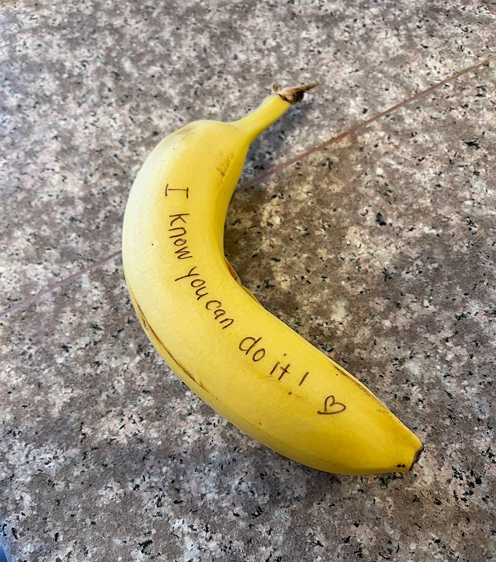 - Whenever I write banana notes for Connor’s lunch, I pretend I’m writing a note to the 30-year-old version of her.