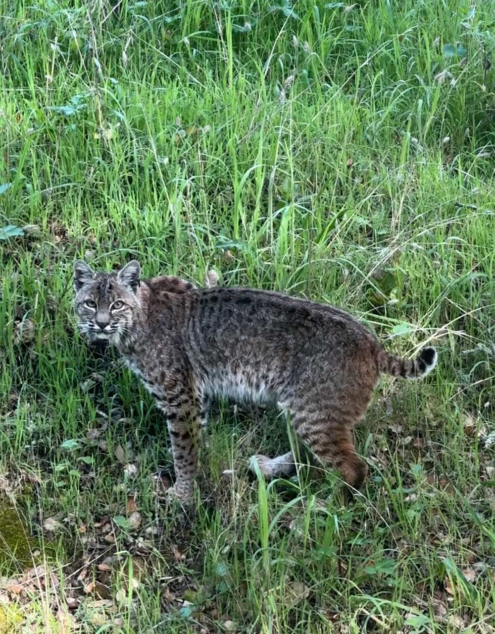 Well, I saw a bobcat out of my window when I was at work last week! (See the pic at the top.) The campus has a lot of trails and open space, and I frequently see deer and other animals out and about. This was the first time I ever saw a bobcat, though. She was pretty cute! Immediately after taking the picture, I texted it to El Hub, and he said, “Don’t go out there and try to make friends with that cat, sweetie.” HAHAHA!