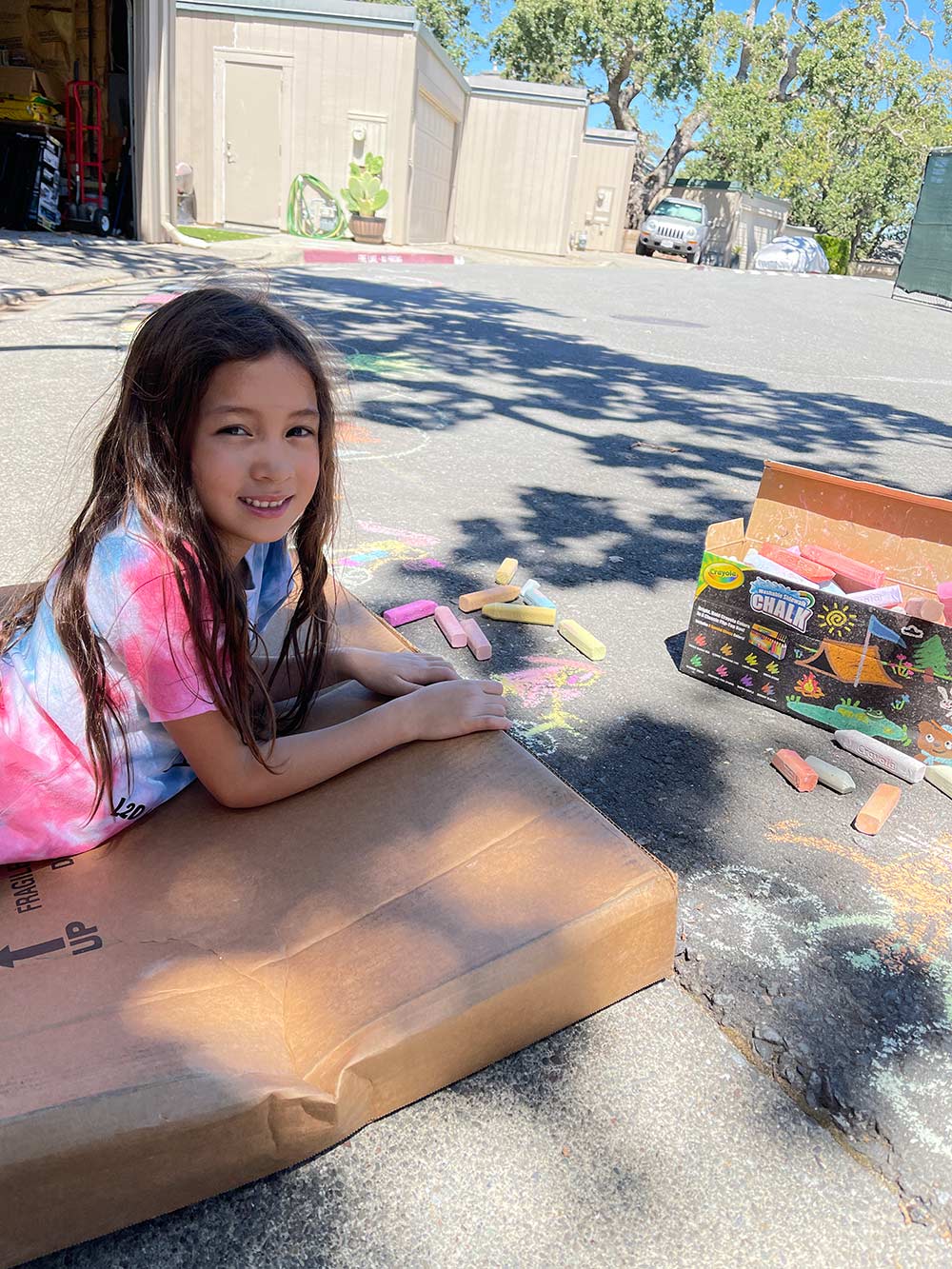 Her favorite things to do at the moment are drawing on the street with chalk and playing a game she calls “wild children.” How does one play “wild children?” Well, thank you for asking. It involves some combination of running around the grassy area in our circle without shoes, looking for four-leaf clovers, gathering sticks, not falling into a dangerous imaginary river and occasionally pretending to free the neighbor’s parrot from jail. In all these scenarios, I’m always the little sister, who also happens to be a toddler. *shrugs*