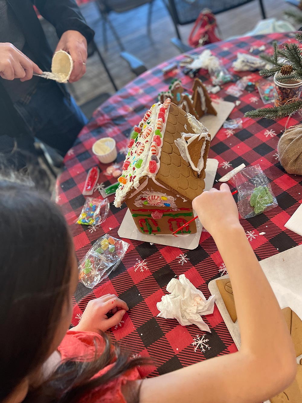 Our town has a yearly event where you can go and build gingerbread houses and have hot chocolate…