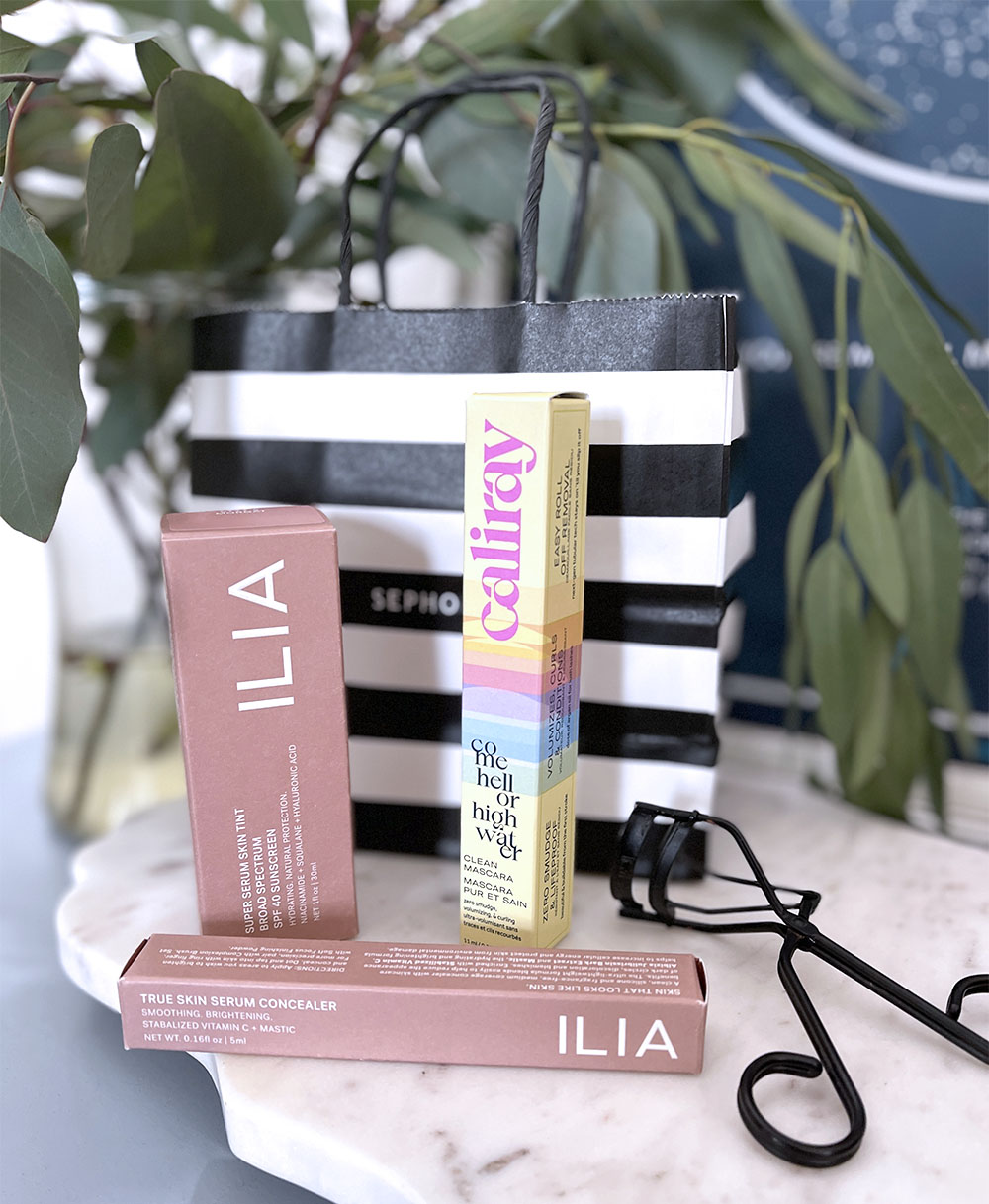 The Ilia Super Serum Skin Tint looked heavy and grayish green on my skin (the color I chose was Morgat), the Ilia Concealer seemed just a touch too thick, and the Caliray Mascara refused to hold a lash curl.