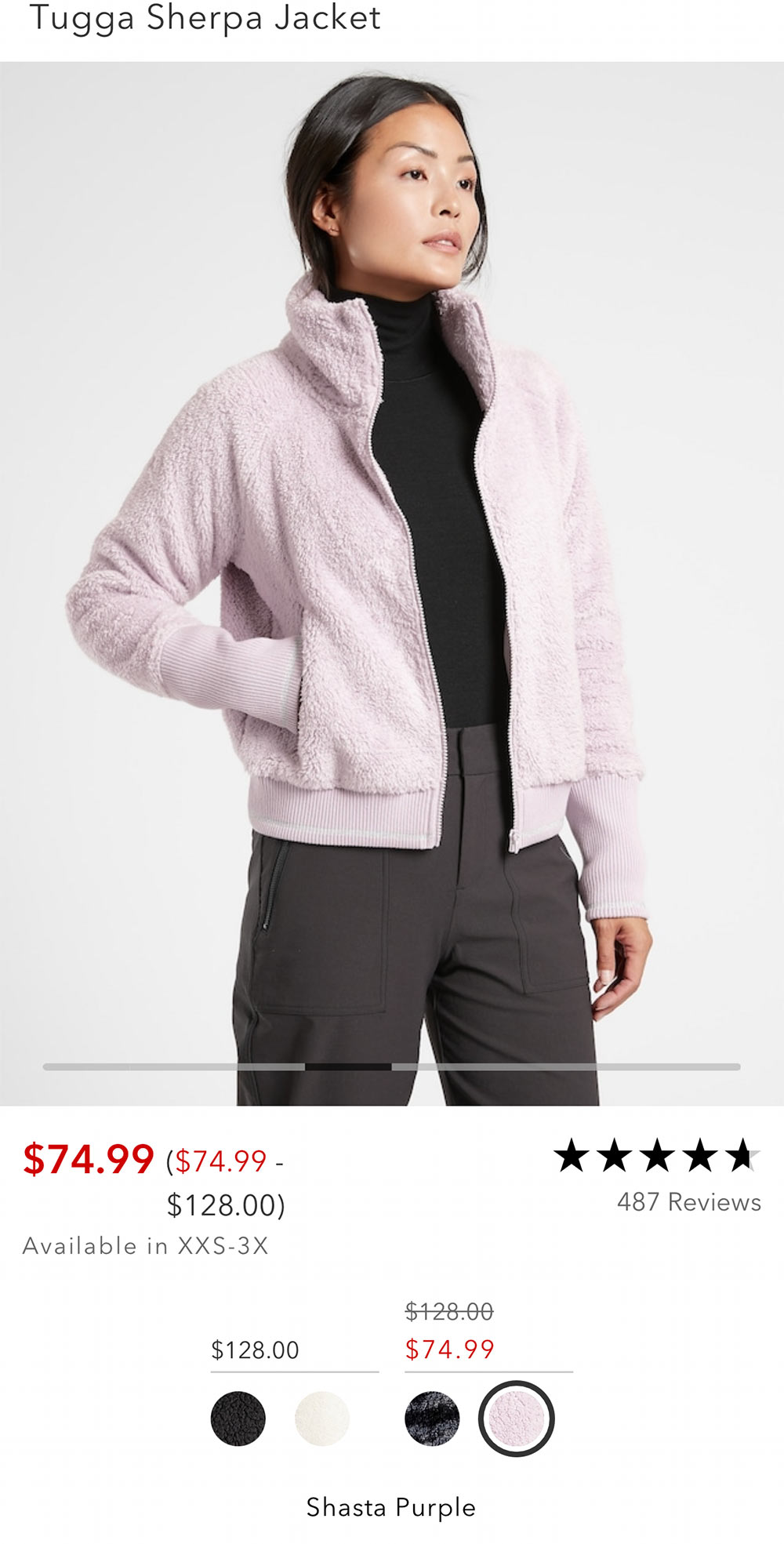 That’s only happened to me once, and it was recently with this sherpa jacket from Athleta.