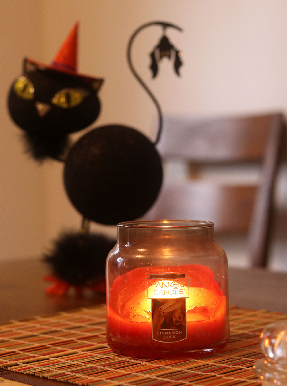 Hiya, friend. It’s a cool, crisp autumn morning here in my neck of the woods, which makes it a purr-fect time to light one of my favorite fall candles — Yankee Candle Cinnamon Stick. It’s a warm, spicy scent that’s smells like delicious baked goods, and I like it because it’s sweet but not too sweet. Do you have a certain scent that you bust out this time of year?