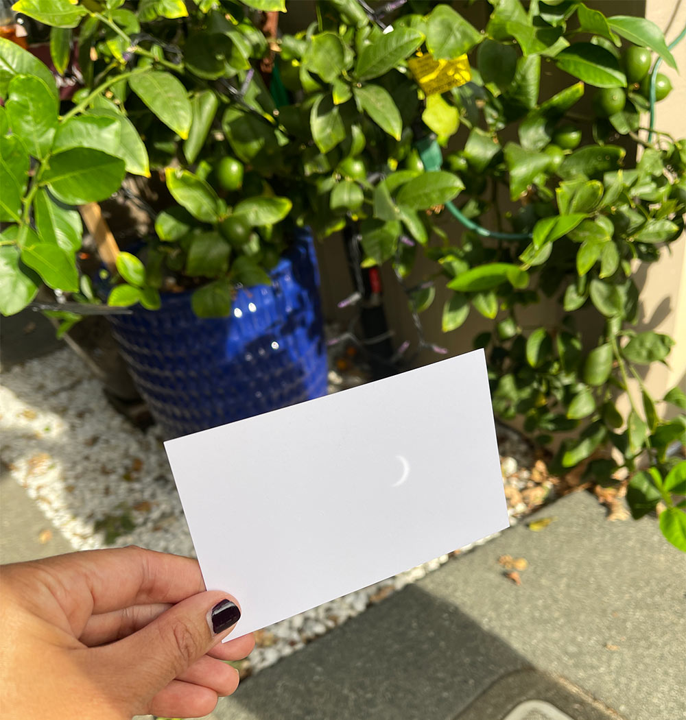 Did you catch the solar eclipse? It was cloudy and drizzly this morning in our neck of the Bay Area, so at first I didn’t think we’d be able to see it, but then the sun broke through the clouds about 10 minutes after it started — hooray!