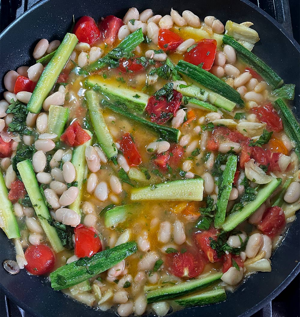 - Cooked a couple vegan meals for lunch — roasted pepper chickpea pasta on Tuesday, cherry tomato gnocchi on Wednesday and garlicky cannellini bean stew (served with a thick slice of multi-grain bread, yum) on Thursday.