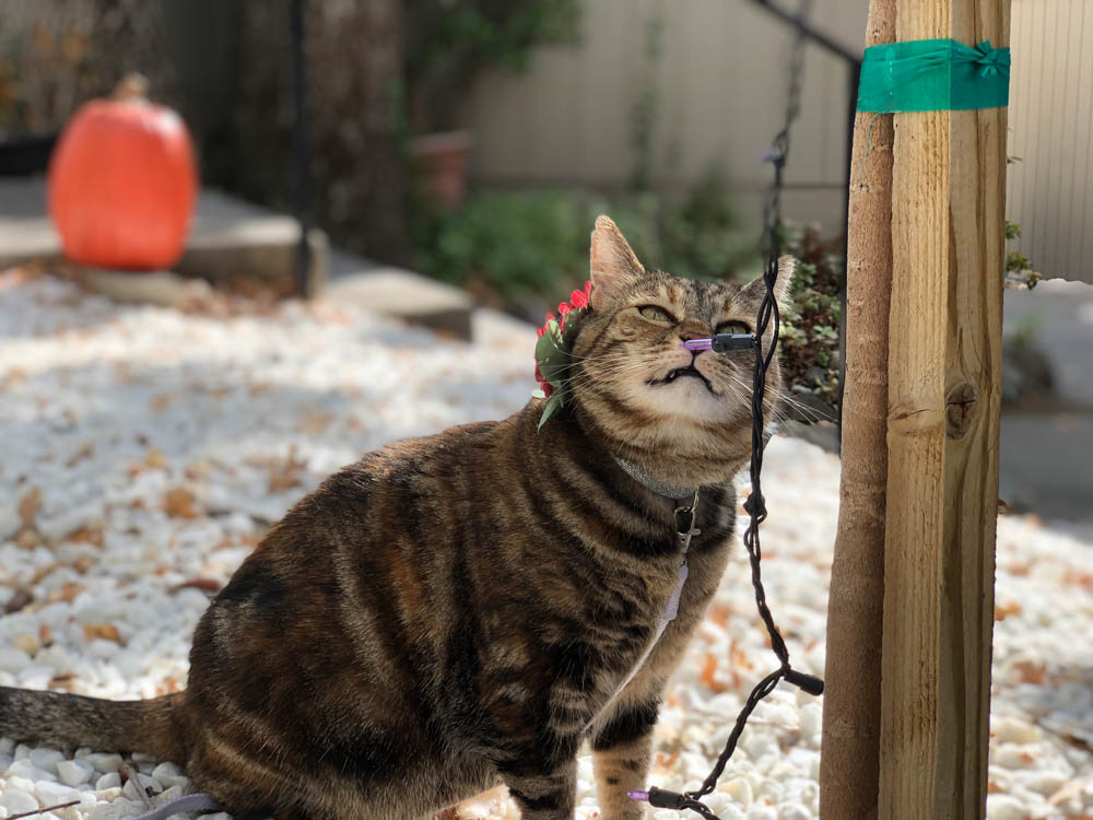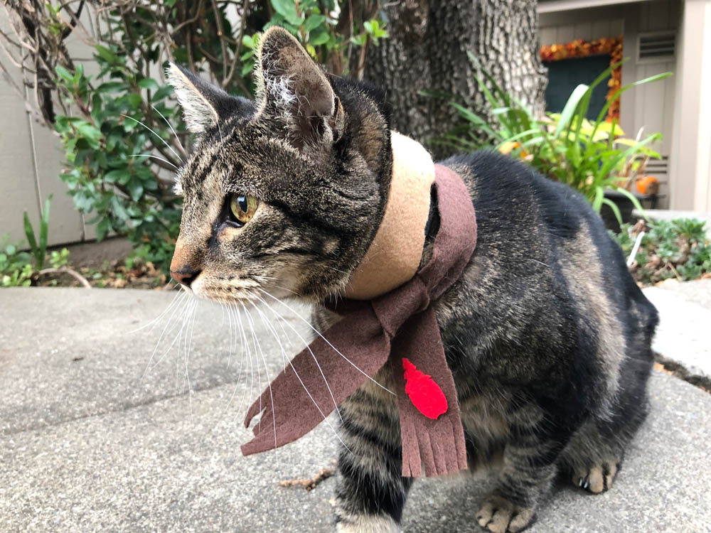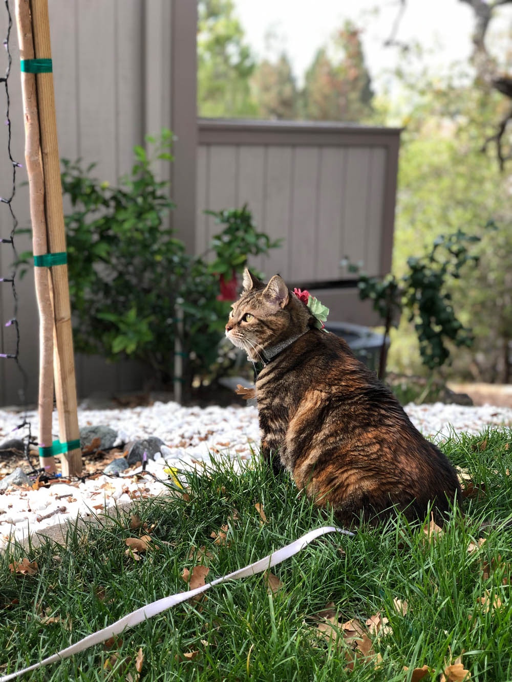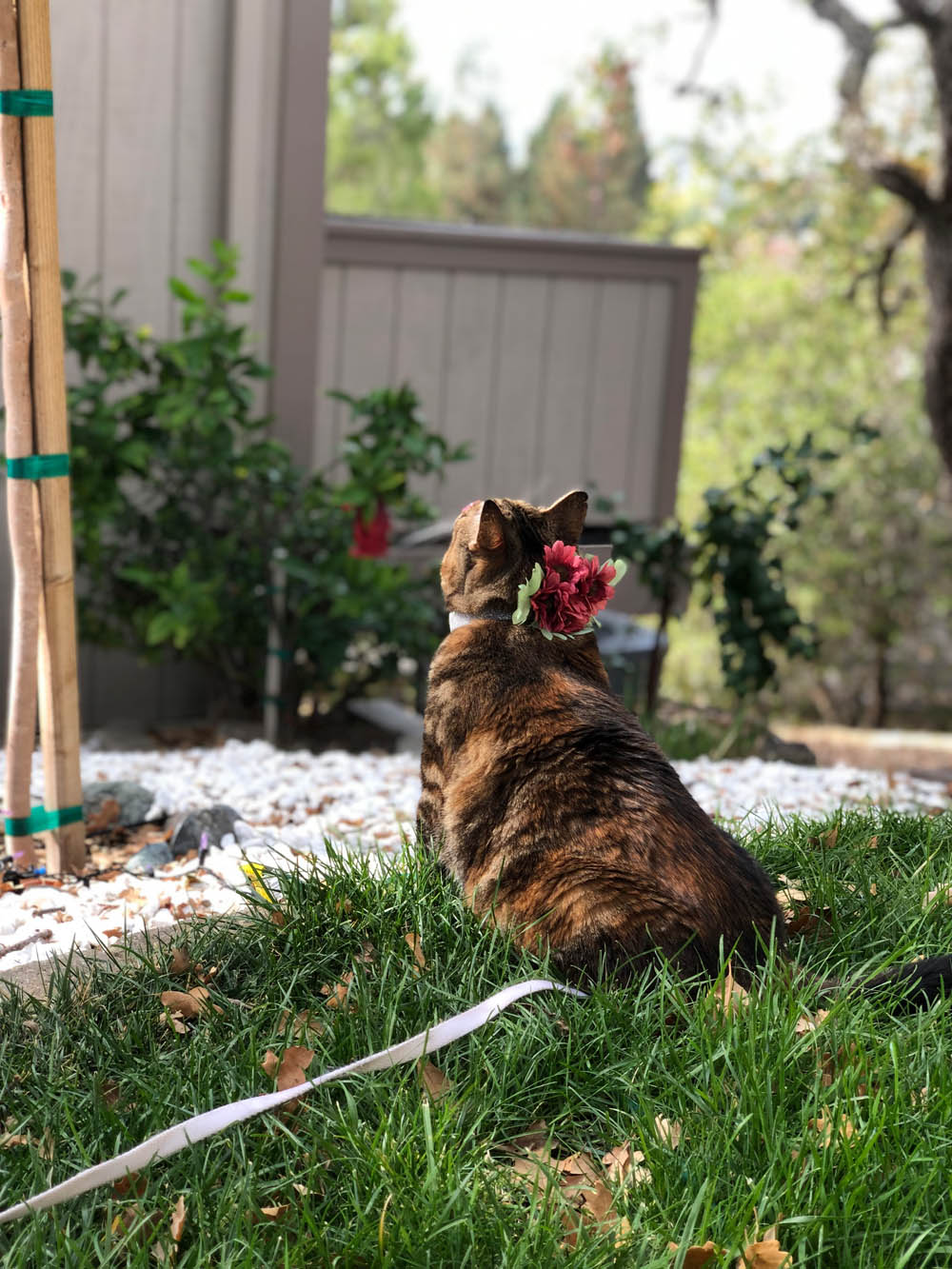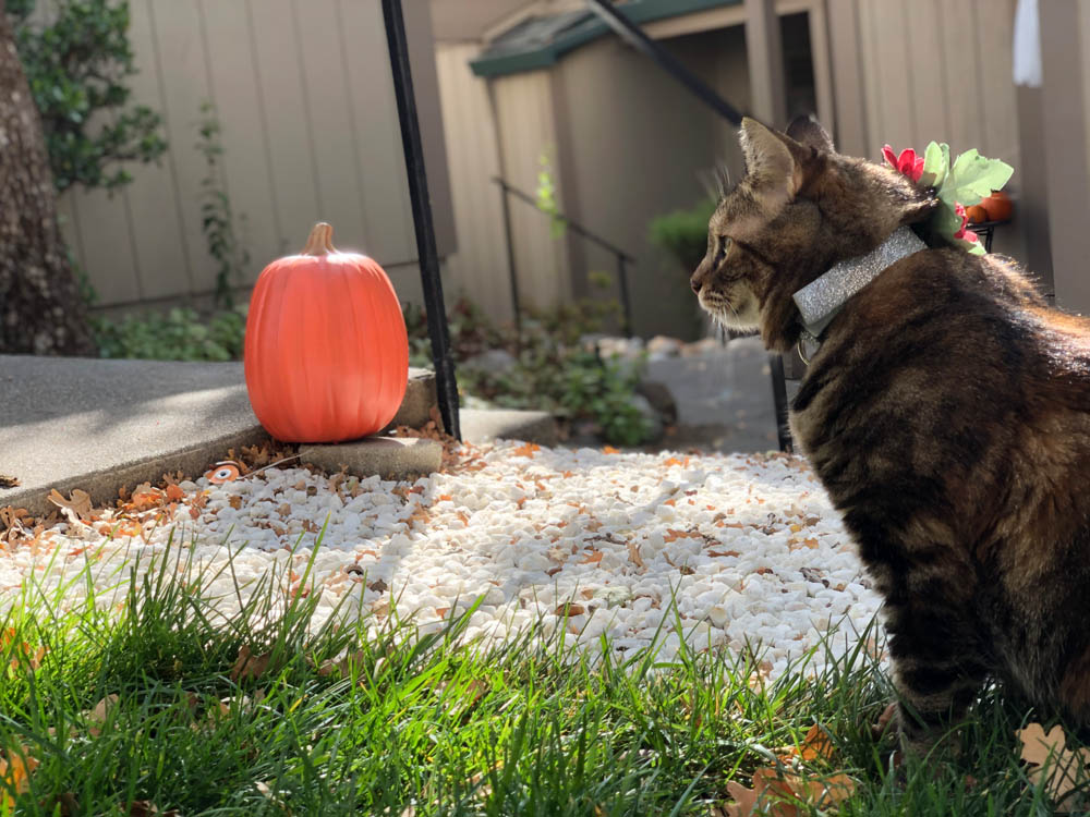 I was trying to explain that to Rosie today when I gave her this autumnal, rust-colored collar. I said, “Rosie-pose, don’t you see how the rust tones in this work of art play so well with the orange in your fur?” And she was just like, “Nah.” She was not having it. Instead, she wanted to talk to me about binary stars. I don’t know… She’s on an astronomy kick I think. She watched a Carl Sagan documentary, and now she just won’t stop talking about planets and stars.