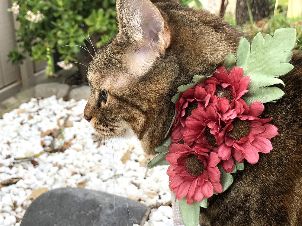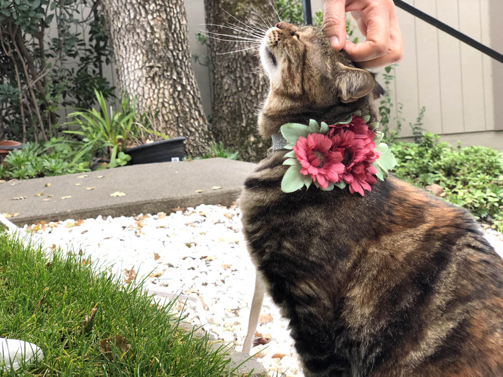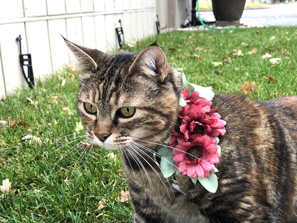 Awww!! Rosie has posies around her neck!! What a cutie!! And wow…your Coywolf is really growing up!! It happens in a flash, doesn’t it?
