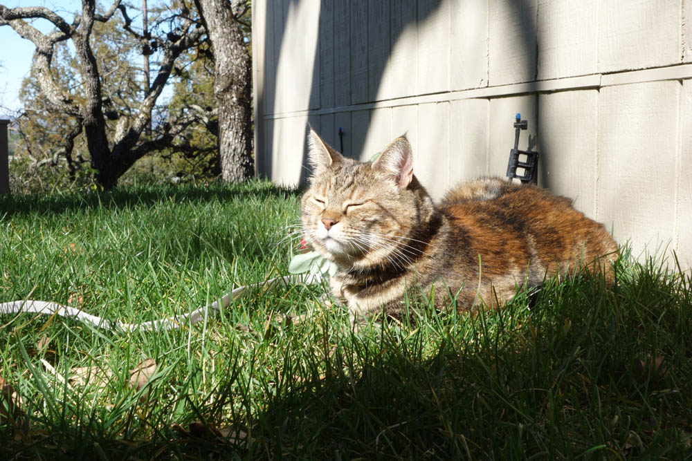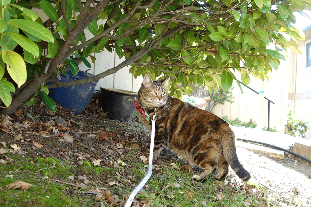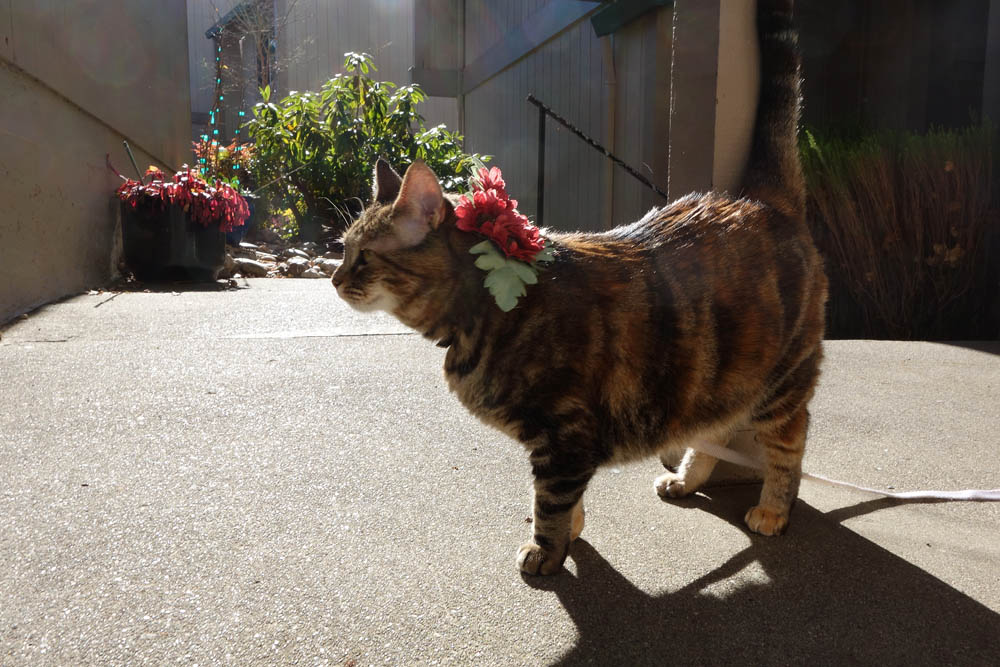 I’ve been trying to inspire Rosie to unleash her inner jungle cat, so today I put her in a fashionable cheetah collar with a complementary flower and some leaves because she is a girly-girl after all.