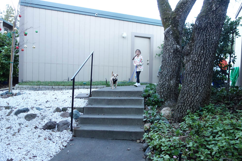 This afternoon, Rosie was taking a leisurely New Year’s Day stroll around the neighborhood when Connie rounded the corner walking Bella, a “friend of the family.”