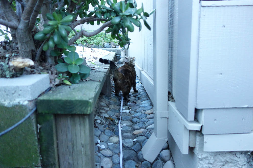 Today, Rosie Pose spent her morning walk looking for the source of an annoyance — a scent she picked up and didn’t like. She didn’t feel like divulging the details, but I’m pretty sure she caught a whiff of Harris, the local cat lothario who frequently infringes upon her territory.