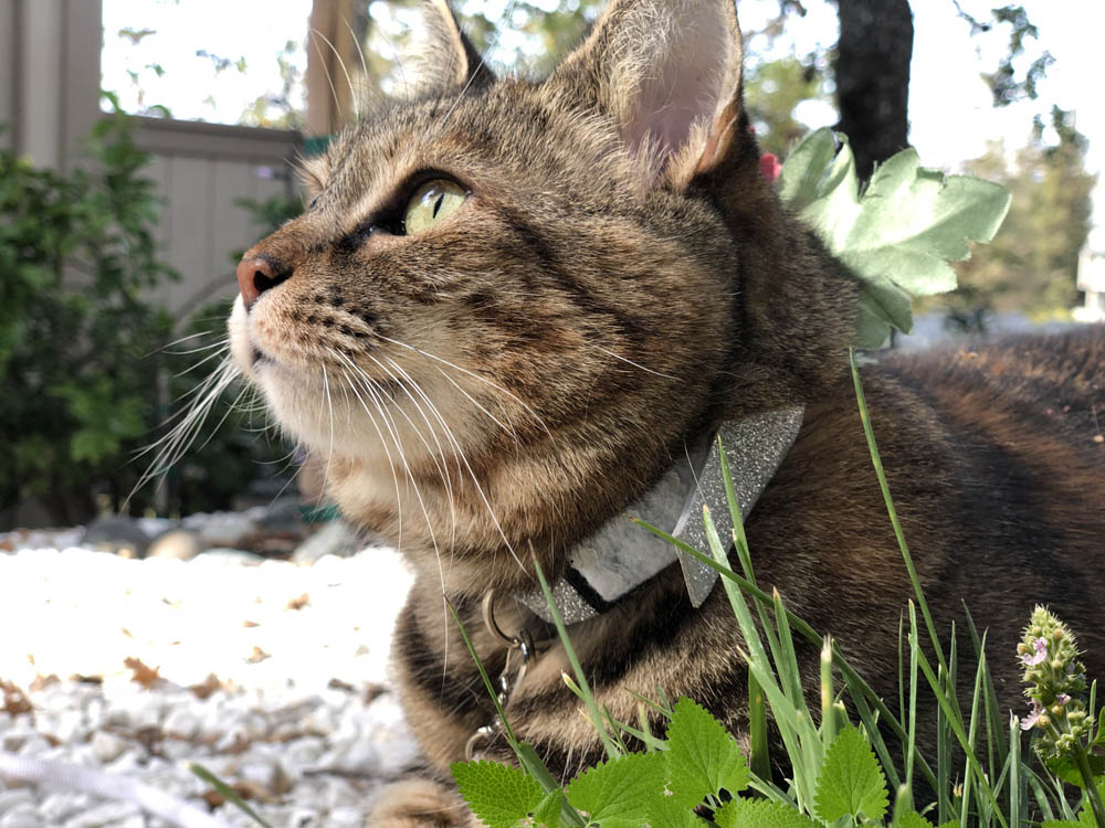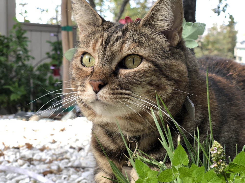 Rosie, on the other hand, doesn’t derive the same pleasure from catnip that Tabs did, but she is, as you know, a mercurial cat scientist and a semi-pro cat hiker.