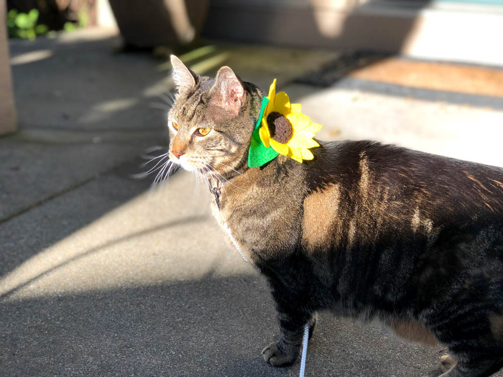 Are you excited about tomorrow’s solar eclipse? Boy, I know someone who would have been. Tabs would have been fired up! He went all out for the one in 2017, made himself a sunflower cat collar, got a bunch of eclipse sunglasses and meowed about it with anyone who’d listen.