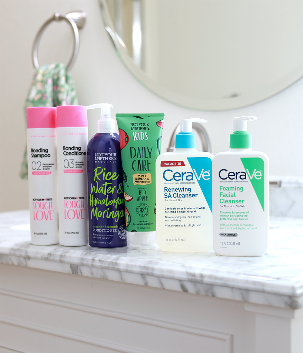 Oh my goodness, seeing how we have two gals with long hair in our household, it’s definitely hair products. We go through a lot of conditioner! Skin care is a close second; I’m forever buying sunscreen, lotion and body wash.