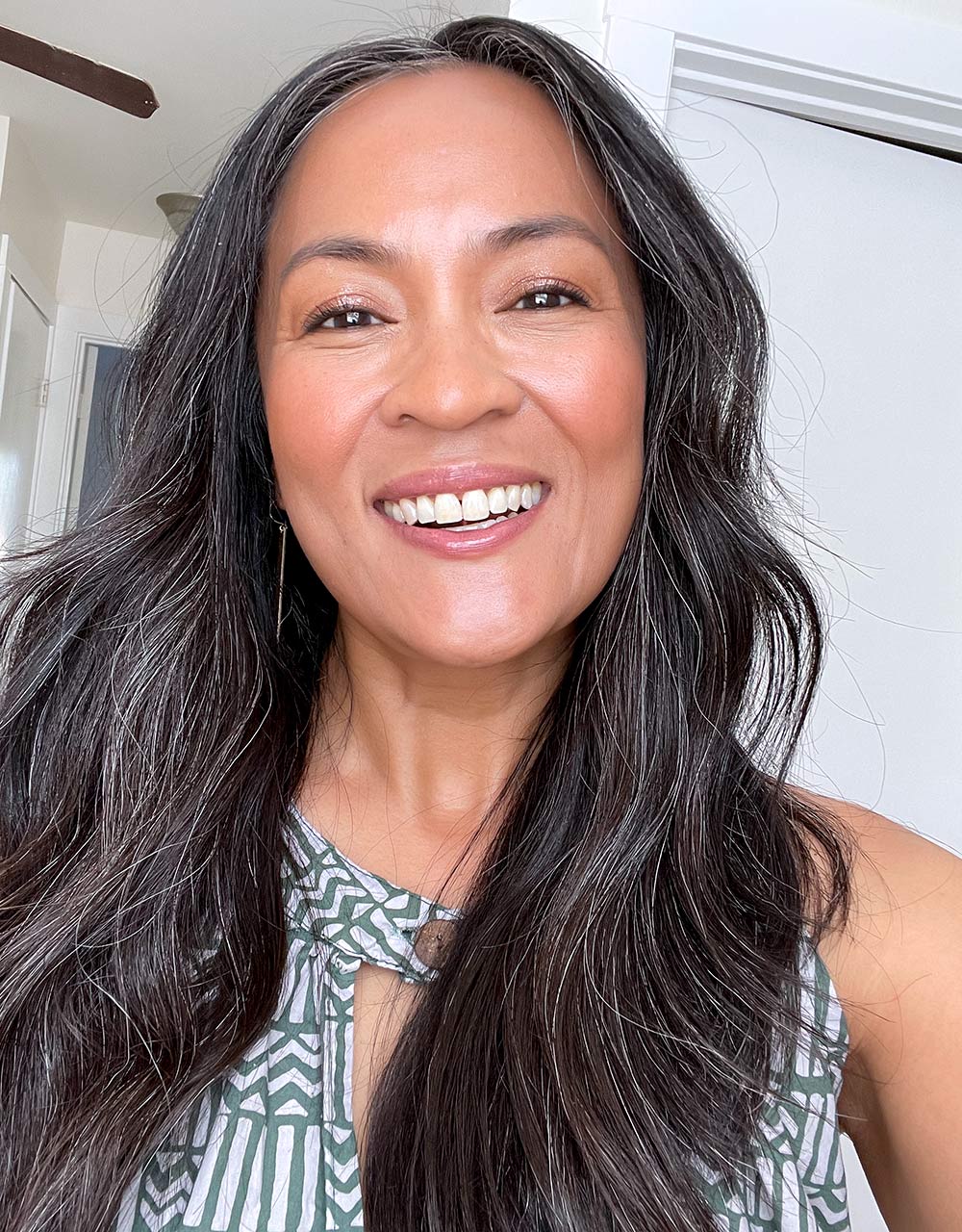 On really hot/humid days I use Honua Malu spf30 sunscreen followed by a few drops of MAC studio radiance face and body in W0, NARS liquid blush, a mix of Orgasm with Dolce Vita. Lancome Defincials mascara and a sheer coat of ILIA United (a copper pearl) from the Warm Nude Palette. Lips are GXVE (Gwen Stefani’s new line) Original Me matte lip color in Tragic Me (beige peachy neutral)